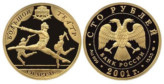 Существует монета номиналом 100 рублей, на которой можно увидеть сцены из "Спартака". Её выпуск приурочили к 225-летнему юбилею Большого театра.