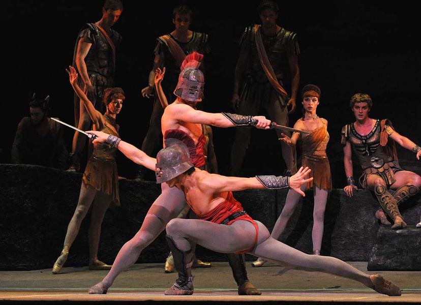 В 1950 году Хачатурян побывал в Италии, видел Колизей, Аппиеву дорогу. Возможно, именно с этими впечатлениями было связано возвращение к задуманному балету. Работа над музыкой продолжалась три с половиной года - последняя точка в партитуре была поставлена в начале февраля 1954го. Премьера "Спартака" состоялась в Ленинградском театре оперы и балета имени Кирова (Мариинском) 27 декабря 1956 года в постановке одного из самых оригинальных балетмейстеров советского времени, продолжателя традиций Фокина, прославленного мастера хореографической миниатюры Л. Якобсона (1904 - 1975). В стремлении отойти от господствовавших в те годы на балетной сцене принципов "драмбалета" Якобсон перенес на сцену скульптурно - пластическую выразительность, увиденную им в экспрессии фигур сражающихся богов и титанов на знаменитом Пергамском алтаре, зкспонировавшемся тогда в Эрмитаже.