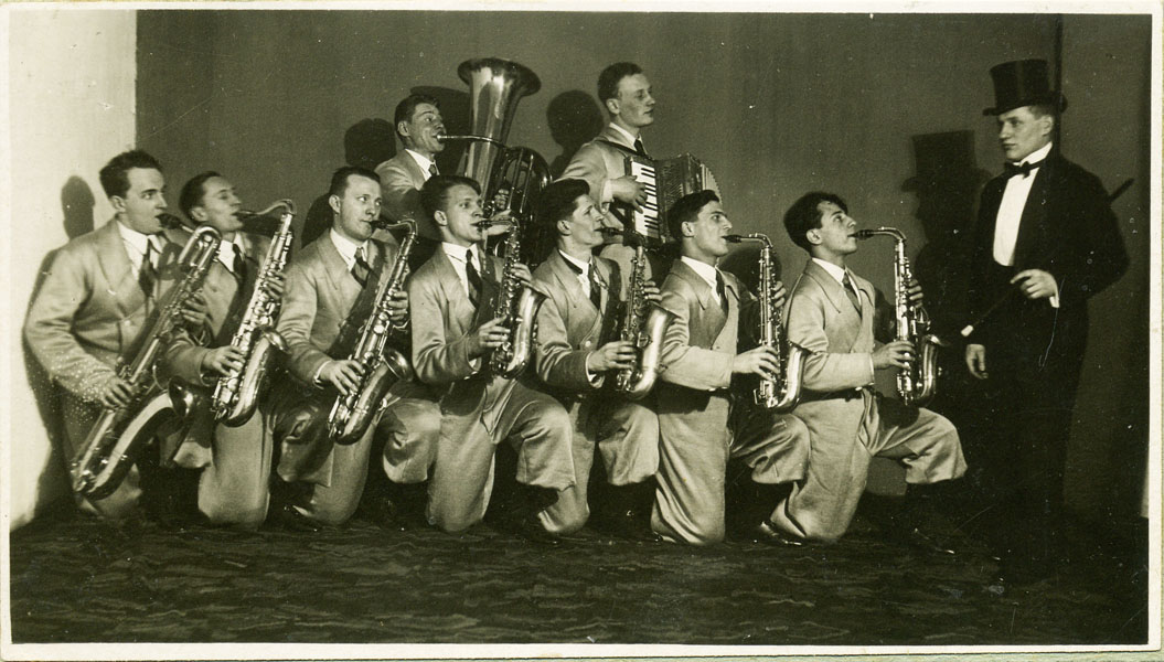 С начала 20-х годов известны биг-бэнды. Биг-бэнд стал популярной музыкой своего времени, достигнув пика славы в середине 1930-х. Руководители знаменитых джаз-оркестров Дюк Эллингтон, Бенни Гудмен, Каунт Бэйси, Арти Шоу, Чик Уэбб, Гленн Миллер, Томми Дорси, Джимми Лансфорд, Чарли Барнет сочинили или аранжировали и записали на пластинки подлинный хит-парад мелодий, которые звучали не только по радио, но и повсюду в танцевальных залах. Многие биг-бэнды демонстрировали своих импровизаторов-солистов, которые доводили зрителей до состояния, близкого к истерии во время хорошо раскрученных «сражений оркестров».Хотя популярность биг-бэндов после Второй мировой войны значительно снизилась, оркестры во главе с Бэйси, Эллингтоном, Вуди Германом, Стэном Кентоном, Гарри Джеймсом и многими другими часто гастролировали и записывали пластинки в течение нескольких следующих десятилетий.