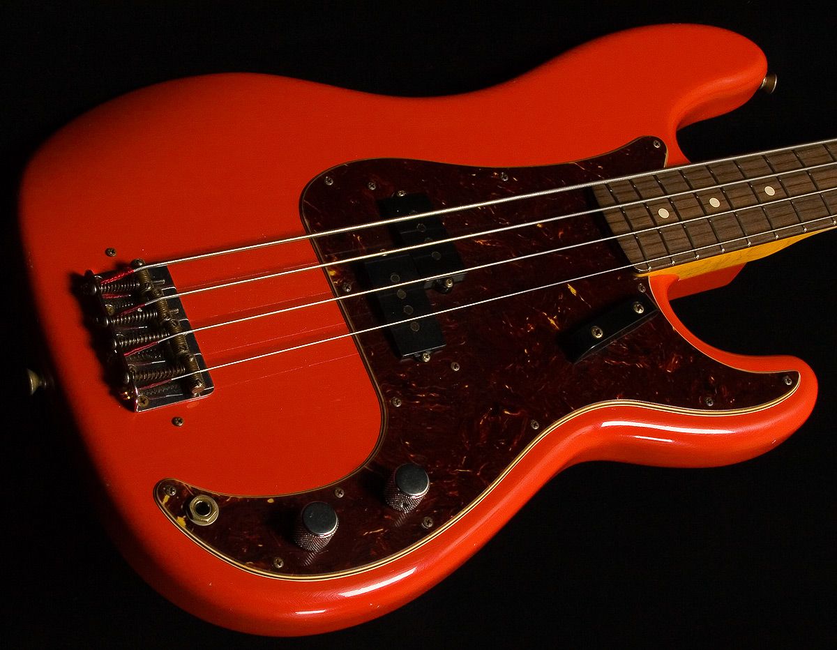 Бас-гитара Fender Pino Palladino Signature Precision создана по образцу двух бас-гитар Fender Precision от Pino. Корпус с выцветшей красной краской fiesta от Бас гитары Fender Precision 1961 года, а гриф и голова гитары от Бас Pino 1963 года sunburst.
