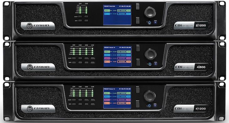 Линия CDi DriveCore, построенная на основе многозадачной технологии DriveCore от Crown, предлагает DSP и возможность цифрового аудио транспорта с каналом BLU для более качественного звука. Серия CDi DriveCore включает в себя 2 или 4-канальные модели с номинальной мощностью 300/600/1200 Вт, а также прямой выход 70 Vrms и 100 Vrms для использования в глобальных установках. CDi DriveCore Series отказывается от контроля нагрузки и вместо этого фокусируется на настройках громкоговорителей для установок, поэтому серия предлагает несколько различных функций, чем предыдущие итерации DriveCore.