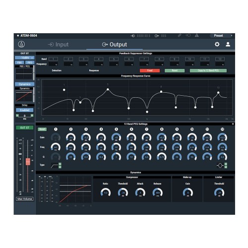Цифровая обработка сигналов доступна для входов и выходов, включая параметрический эквалайзер, компрессор, лимитер и управление обратной связью. Средства управления и мониторинга доступны локально на передней панели или через интерфейс Web Remote, который позволяет пользователям выполнять настройки с ПК на базе Windows, Mac, iOS или Android, а также вносить дополнительные изменения в настройки ввода и вывода.