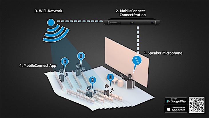 MobileConnect от Sennheiser предлагает слушателям-ученикам в школе, церковным прихожанам, театральным зрителям и другим - возможность прослушивания потоковых аудио через Wi-Fi на свое устройство iOS или Android OS, предоставляя учреждениям средства для распространения звука.