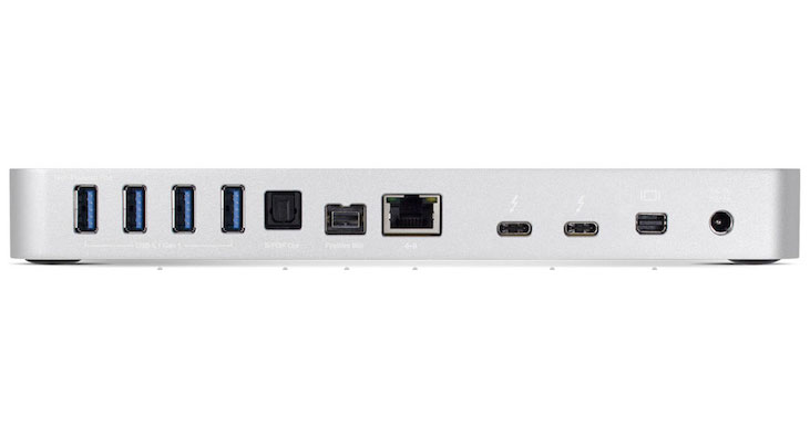 OWC Thunderbolt 3 Dock обеспечивает пропускную способность до 40 Гбит / с полосы пропускания на Thunderbolt 3-оборудованных компьютерах Mac. Устройство включает в себя пять портов USB 3.1 Gen 1, два порта Thunderbolt 3 и различные SD-карты, S / PDIF, FireWire 800, Gigabit Ethernet, мини-DisplayPort и аналоговые аудиовходы / выходы.