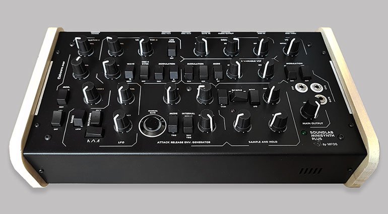 Итальянский моддер Elettrorama выпускает специальное издание Sound Lab Minisynth Plus MIDI. Elettrorama лицензировала многие из синтезаторов Ray Wilsons. Minisynth Plus MIDI это довольно шикарный маленький аналоговый монофонический синтезатор. Он имеет 2 осциллятора с переменной импульсной модуляцией, квадратной и пилообразной формы сигнала и генератора синхронизации. В Вашем распоряжении микшер для управления уровнем 2ух источников сигнала плюс ручка шума, управление атакой и релизом, фильтр нижних частот 12дб и одиночное ЛФО. Модуляцию можно направить к генераторам и фильтровать независимо.