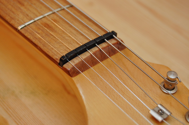 Если сделали слишком большие пропилы, то аккуратно снова нарастите порожки. Для этого капните под гитарные струны небольшое количество расплавившегося пластика или засуньте в одну из щелей жесткую кожу.