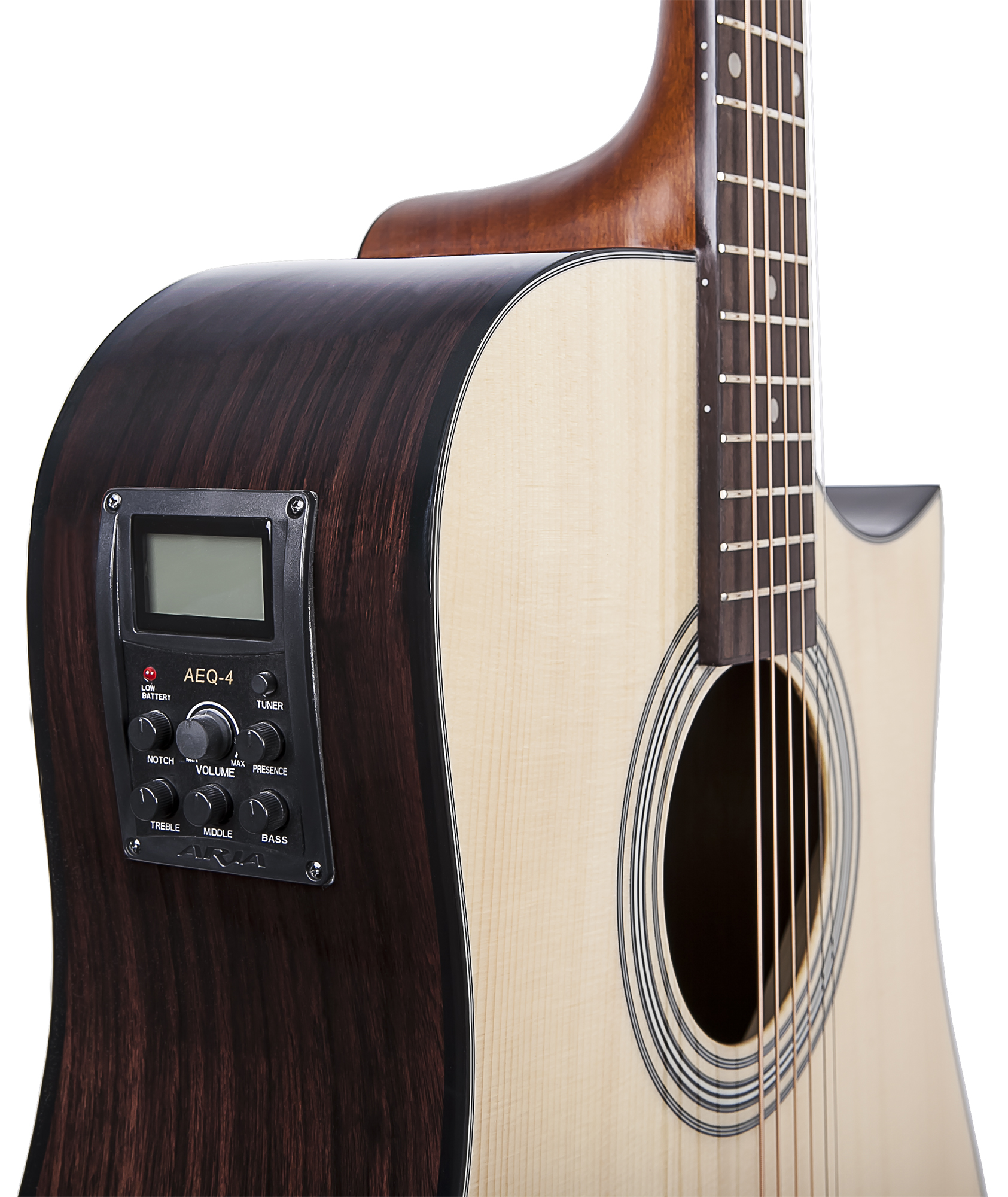 Преампы (предусилители) и эквалайзер обычно распологаются в корпусе гитары (обечайках), однако есть инструменты без встроенного предусилителя и эквалайзера, а лишь со встроенным пьезо датчиком.Так же существуют инструменты со встроенным тюнером и гитарными эффектами.
